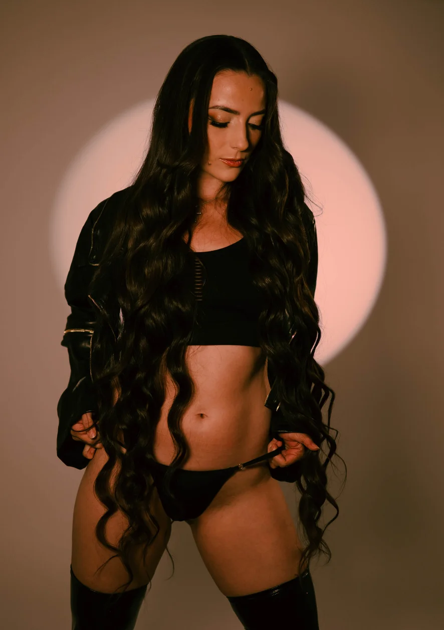 Long hair that falls like a dark waterfall, intense gaze that captures effortlessly... a beauty that does not ask permission, it is simply felt. Its presence is soft but powerful, leaving an irresistible mix of mystery and desire in the air.
